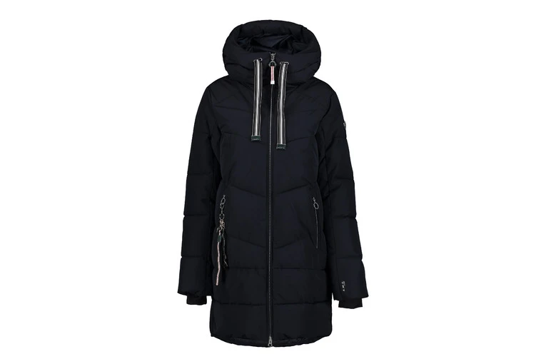 Trendy and super warm puffer coat for women. The Luhta Inkoo padded coat will keep you warm even on the coldest days of winter. The coat is made of a wind and water repellent fabric and the airy down-like padding provides good insulation from the cold. There are stretchy inner cuffs in the sleeves and the front pockets are lined to allow you to warm up your hands. The front zipper opens both ways, so if you need a bit more room in the hem or would like to access your trouser pockets more easily, you can partly open the zipper from the bottom. The embellishment hanging from the pocket zipper can also be used as a key chain.